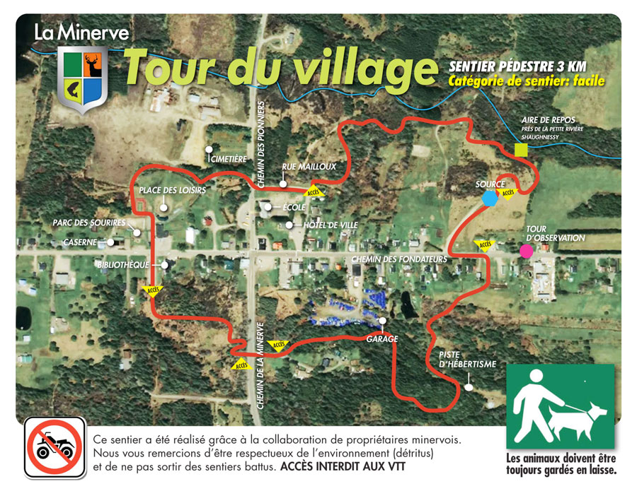 La municipalité de La Minerve possède maintenant une magnifique tour d’observation sur un terrain appartenant à la municipalité, située en haut du village, direction lac Désert (vue sur la source).